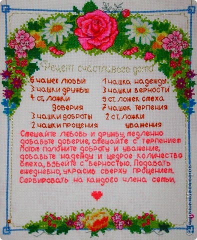 Тип работы Событие Техника Материал Картина, панно, рисунок Вышивка крестом: Рецепт счастливого дома + СХЕМА Нитки